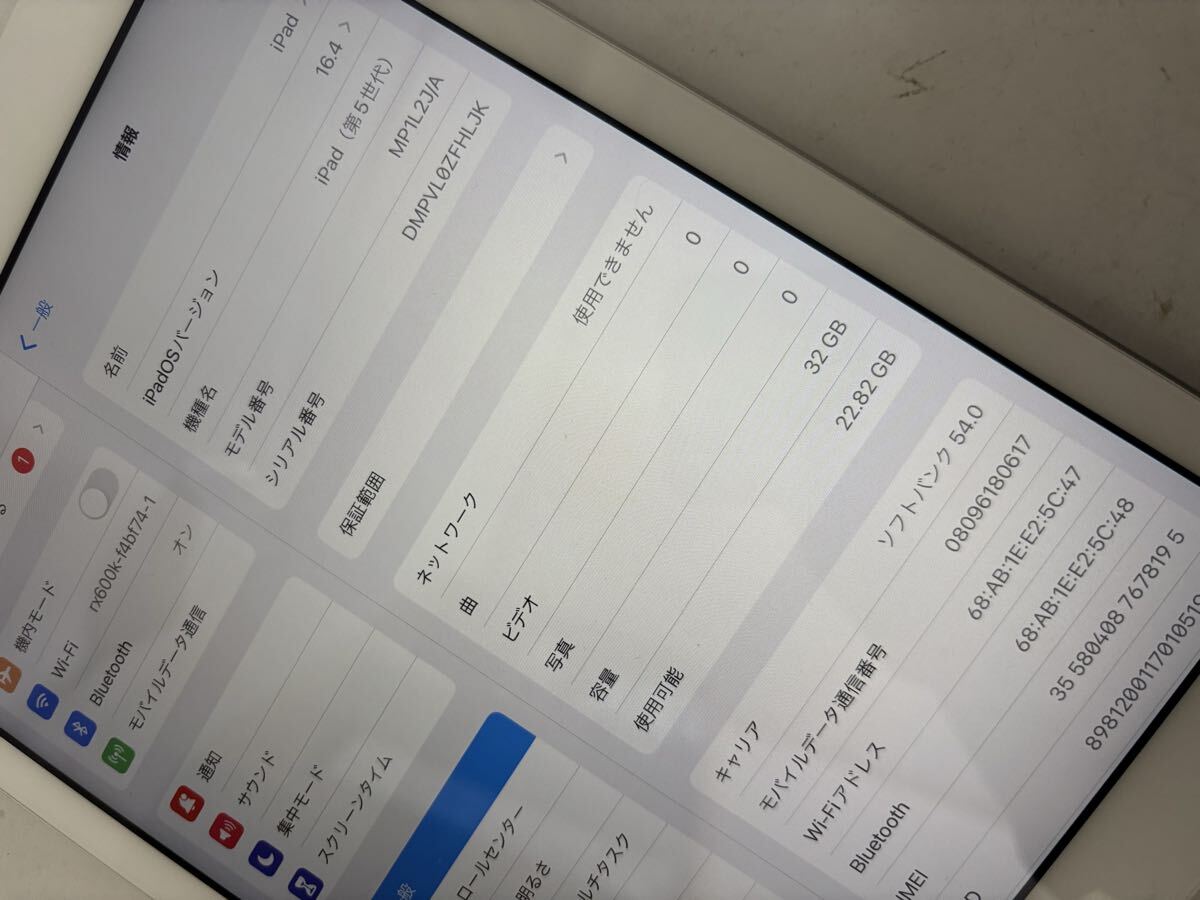 極美品 Apple iPad (第5世代) Wi-Fi+Cellular 32GB MP1L2J/A アップル アイパッド 收藏