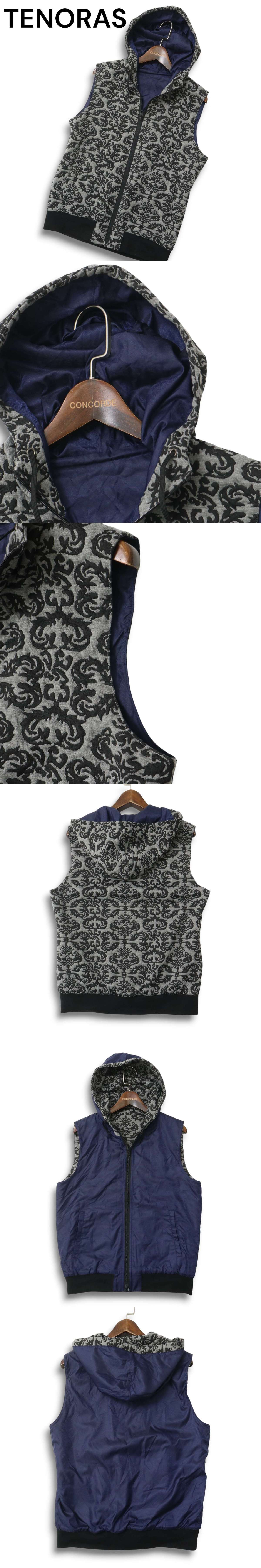 TENORAS メンズティノラス 秋冬 2way リバーシブル★ バロック調 フーディー ジップアップ ベスト Sz.M メンズ 收藏