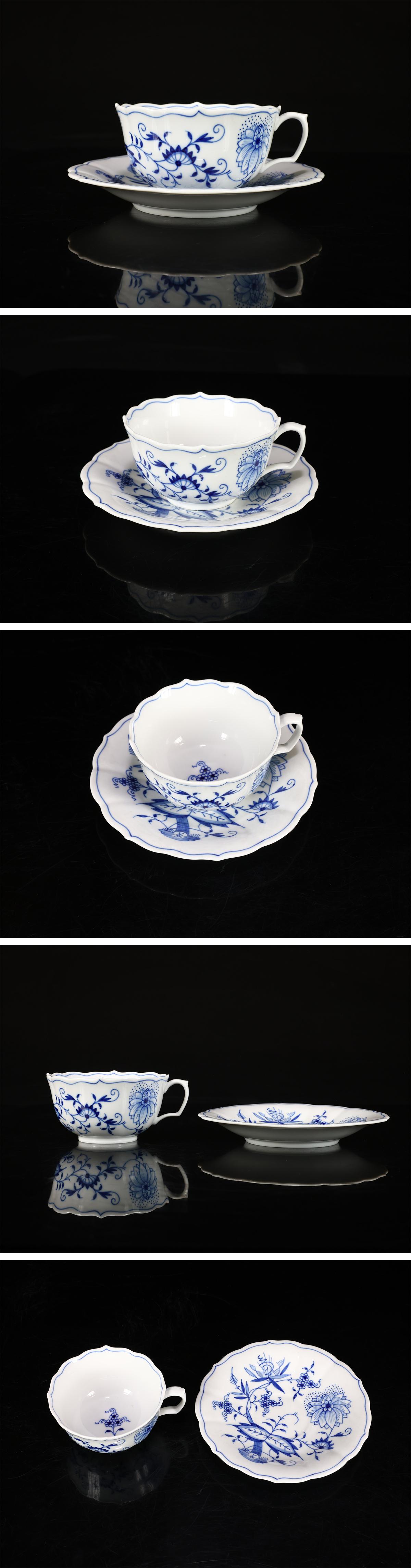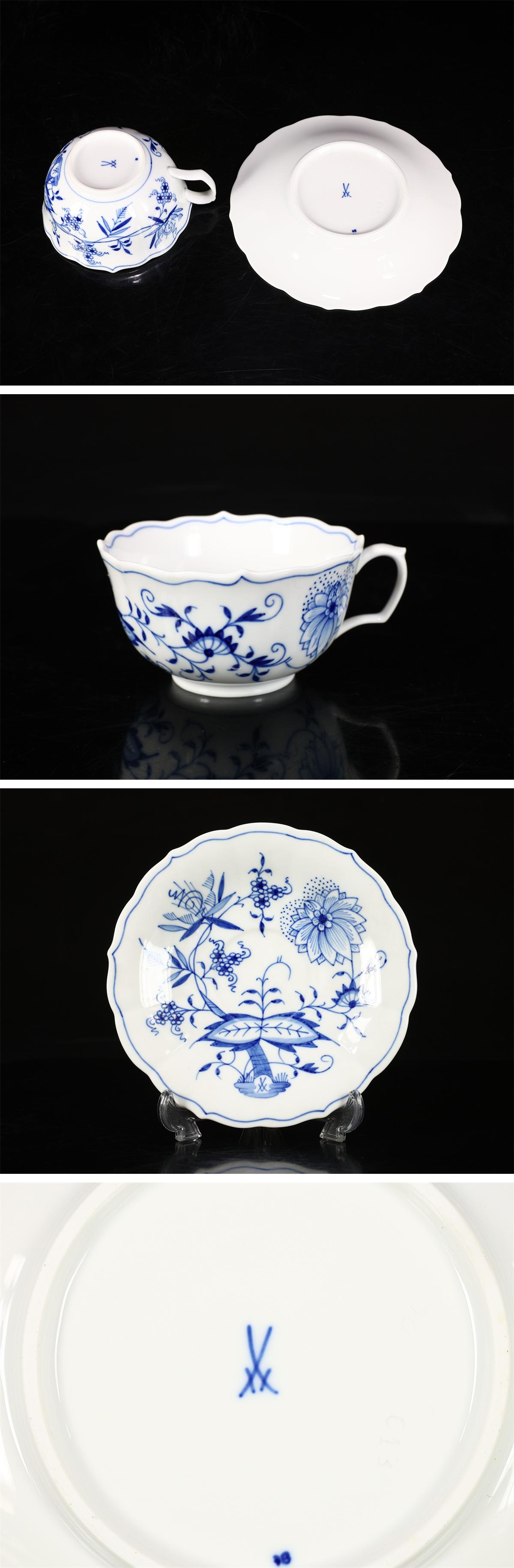 【吉】CN627 MEISSEN 【マイセン】 ブルーオニオン カップ&ソーサー 1組 2点セット カップ径9.8㎝/美品! 收藏