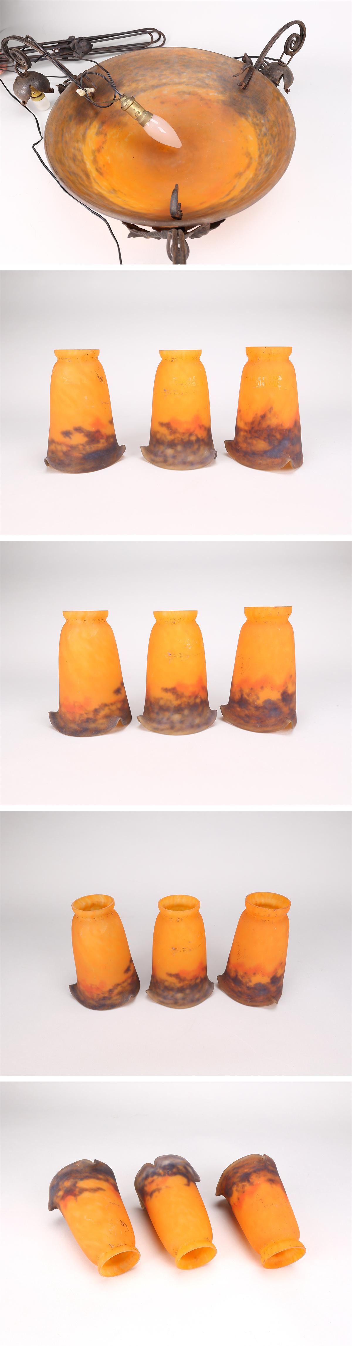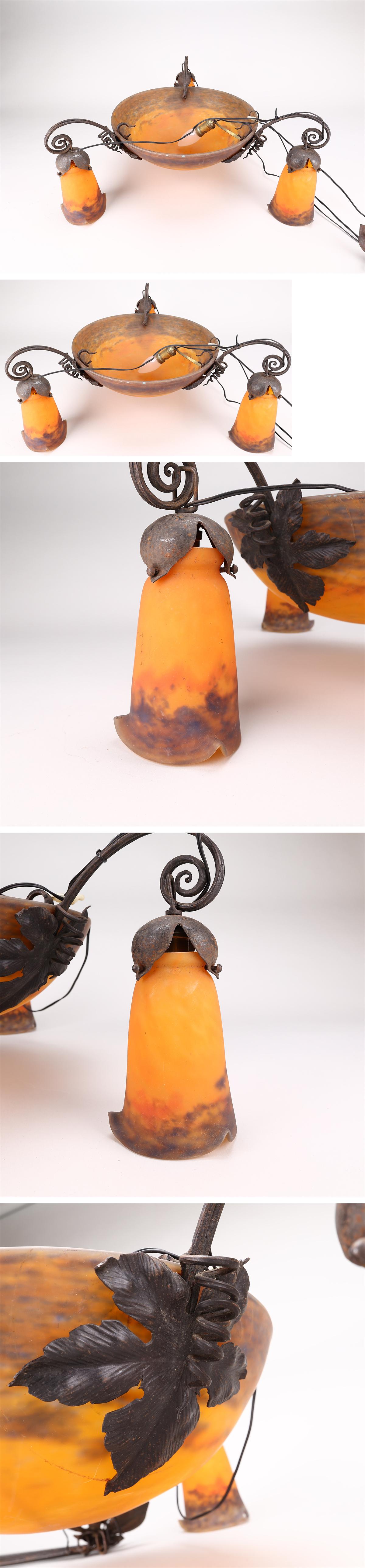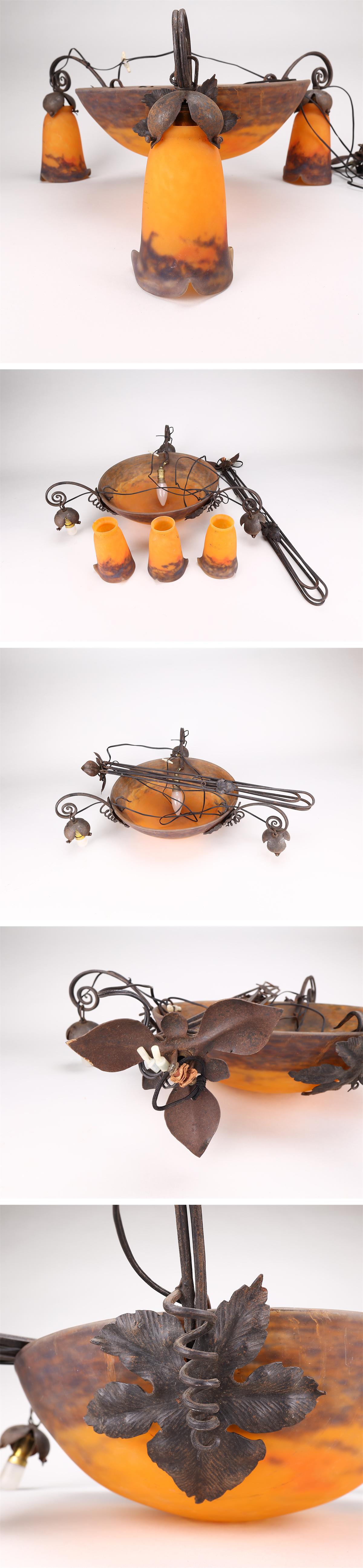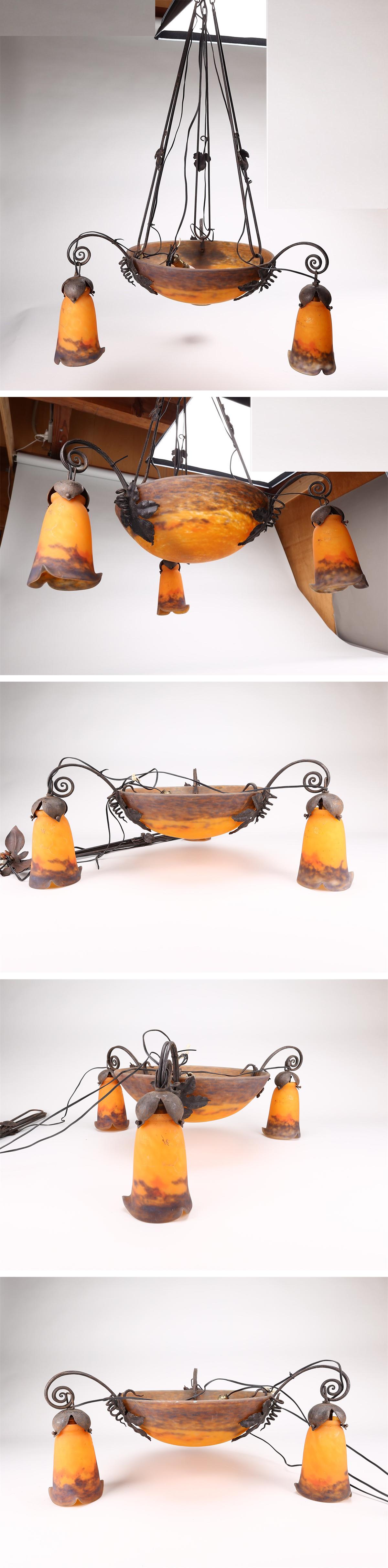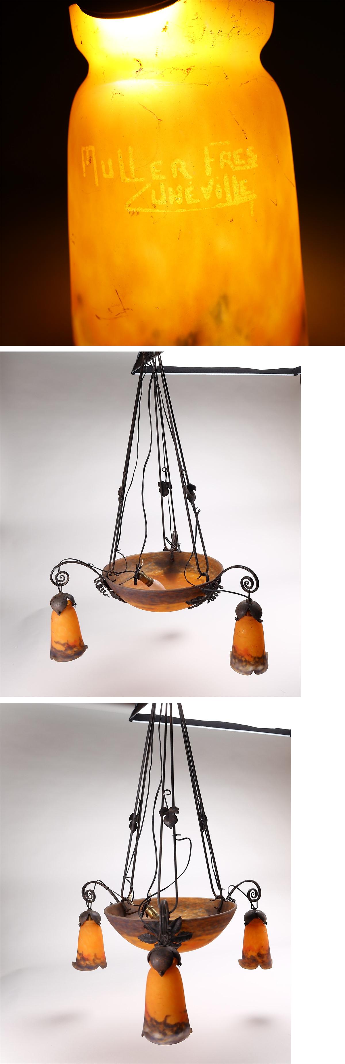 【吉】PC823 アール・ヌーヴォー期 Muller Freres Luneville 【ミューラー兄弟】4灯式シャンデリア フランスアンティーク 幅約50cm 收藏