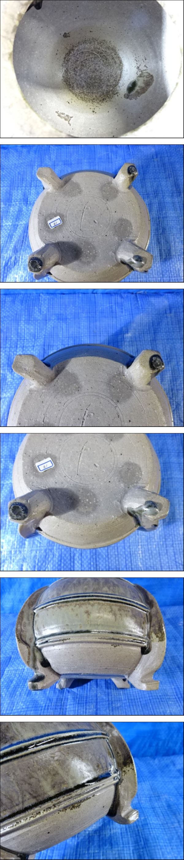 QC-82/猿投四足壺 飾壺 大石訓義作 逸品 猿投古窯 現代陶芸作家 花瓶 花器 花生 茶室床飾 茶道具 伝統工芸品 陶歴 陶器 陶芸品 未使用 收藏