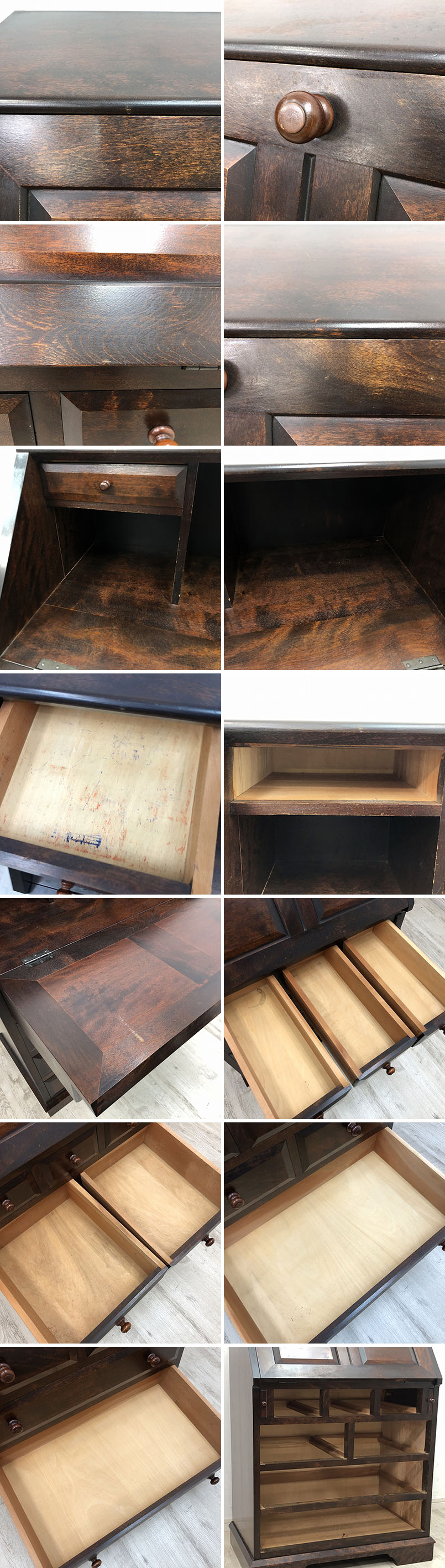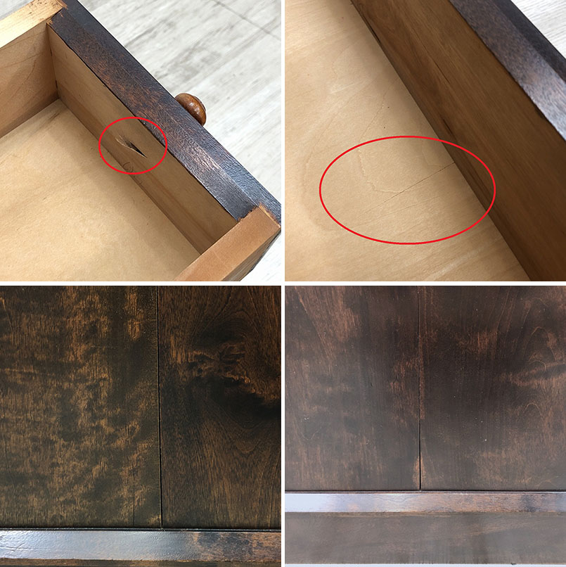 こちらは松本民芸家具 ライティングビューロー ミズメザクラ 無垢 机 収納家具です。 中古品です。 硬質で美しい木目が特徴のミズメザクラ無垢材を贅沢に使用したライティングビューローです。 艶やかで落ち着いた風合いが上品な雰囲気を醸し出し、 和洋どちらの空間にも馴染みやすい一品です。 ![]() 収納家具としてはもちろん、必要な時に机としてもお使いいただけます。 あまり家具を増やしたくない一人暮らしの方やワンルームのお部屋にもお勧めです。 【松本民芸家具】 松本民芸家具は、昭和19年に長野県で設立された老舗の家具メーカーです。 伝統的な和家具の技術で作った日本人のための洋家具を作り続けており、 そのモダンなデザインと長く愛用できる耐久性の高さから、今でも非常に人気の高いブランドです。 【コンディションについて】 全体的に使用感や小傷があります。 ![]() 引き出し内部に割れが2か所あります。 側面中央に隙間が開いています。 詳細につきましては下記画像も合わせてご参照ください。 ![]() 民芸家具を他にも出品中です!(2025.11.10時点) 再良市場の他のお品物はこちらから!