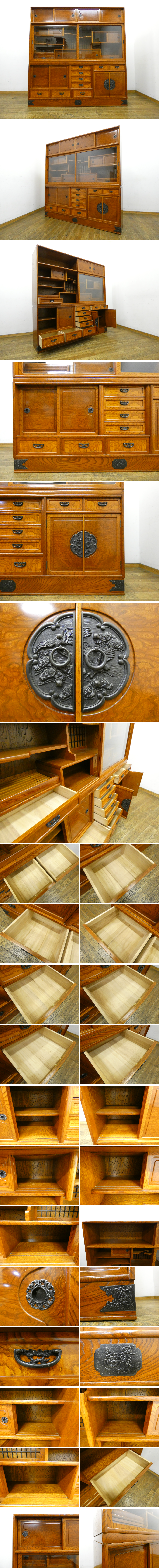 ◆RN72◆美品◆欅◆ケヤキ◆和モダン◆大型◆水屋箪笥 茶棚 茶箪笥 食器棚 カップボード 飾り棚 サイドボード◆幅176cm◆時代箪笥◆和家具 收藏