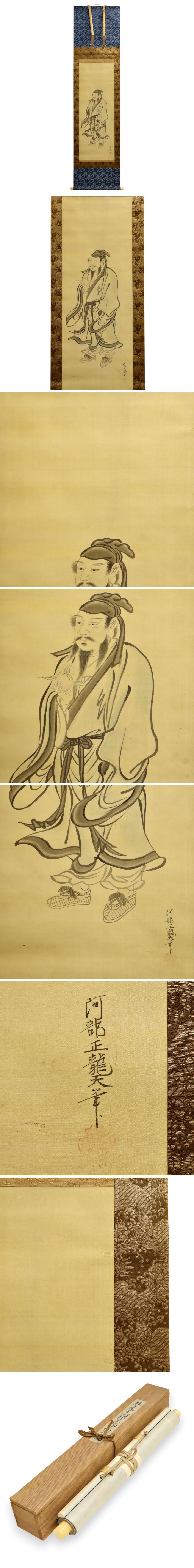 真作保証 江戸中期の大名 備後国福山藩第2代藩主 阿部正福 仙人図 絹本 箱 備後 掛軸 書画 骨董品 古美術品 1889udyN 收藏