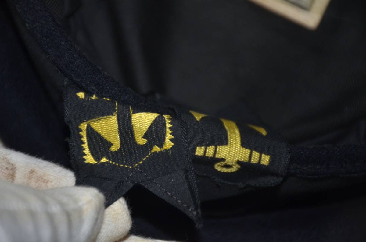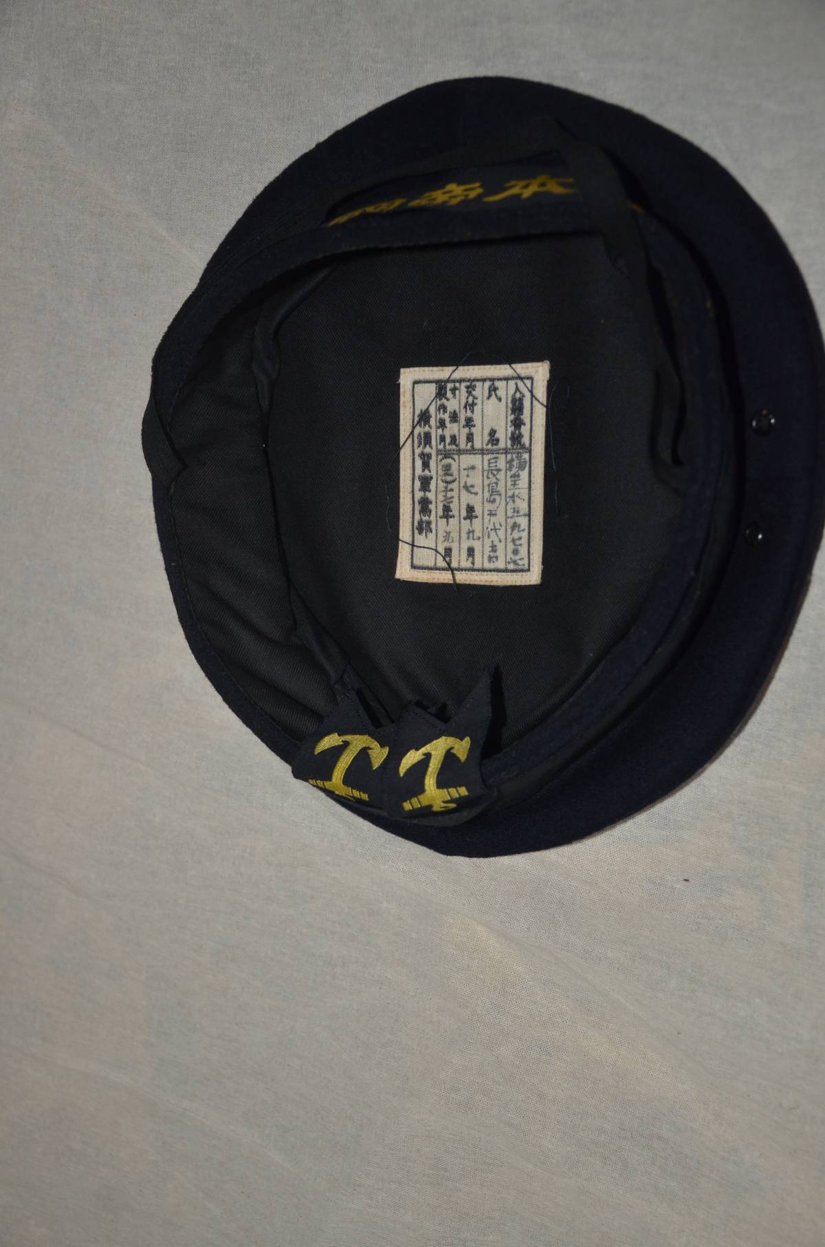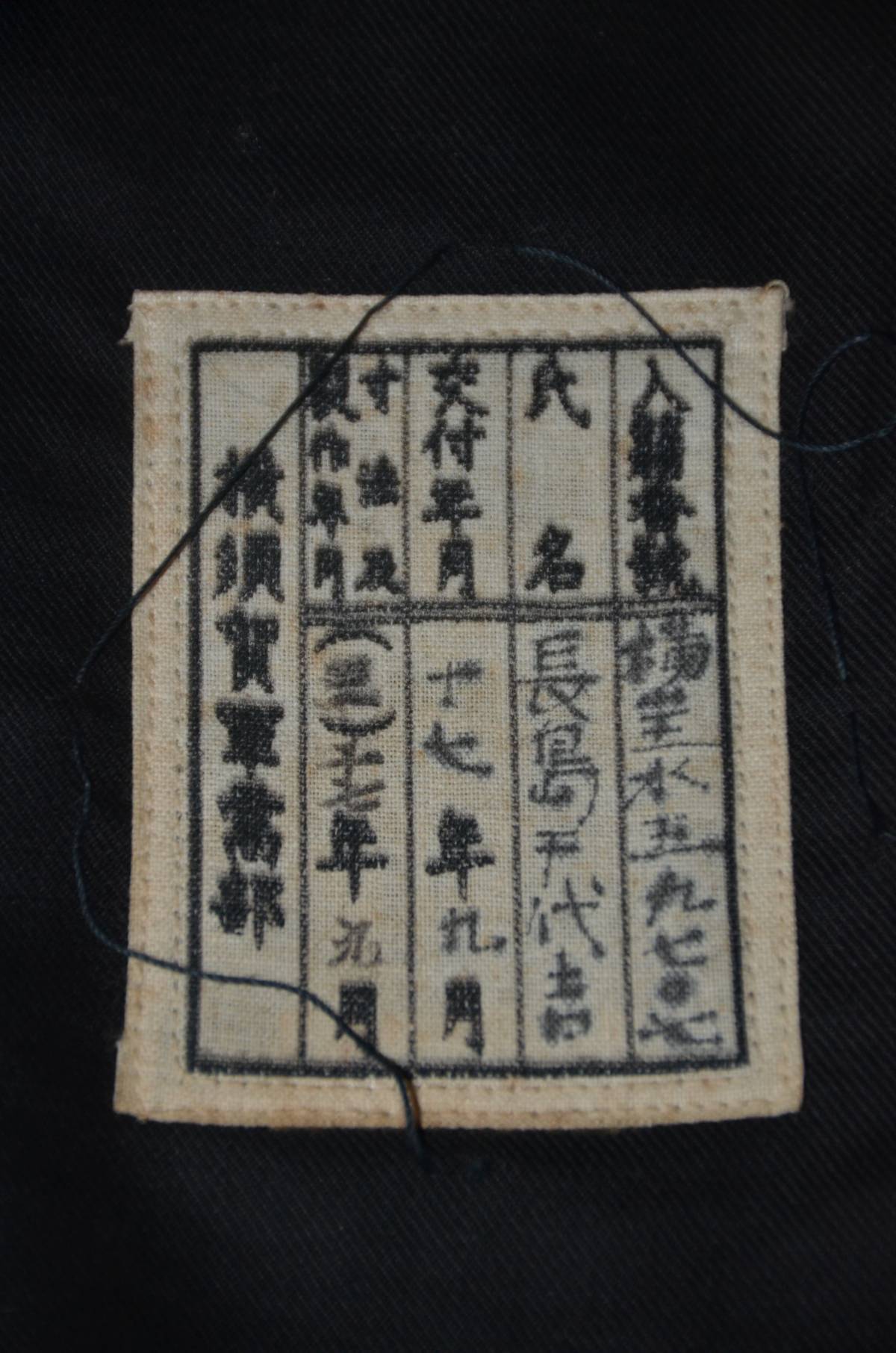 005-009までの海軍水兵の一連の物は、全て同一人の記名がされています。従軍されて、何点かは在郷軍人として着用できるように持ち帰ることができたようですが、一部は戦後実物を入手して記名されたようです。御依頼者も1点ずつを御希望ですので、1点ずつで出品いします。海軍水兵軍帽は、検定印は(三) 昭和17年9月 横須賀軍需部と入っています。顎紐もオリジナルが付いています。顎まで伸ばすと中のゴムが切れますので、鼻で止めています。ペンネントは、大日本帝国海軍の織り出しが付いています。戦後の従軍体験者がとした理由の一つに、検定布に保護プラスチックが付けられていました。髪にポマードなどを着用されているので、汚れ防止と想像しました。サイズは26-57センチ位です。全て落札されれば、送料は一括で700円になります。本文下の追加写真もご覧ください。ヤマト運輸宅急便で、全国一律700円でお送りさせていただきます。