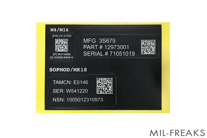 US 米軍 IUIDプレート QRシリアルコード M4, MK18, SOPMOD アルミパネル ステッカー