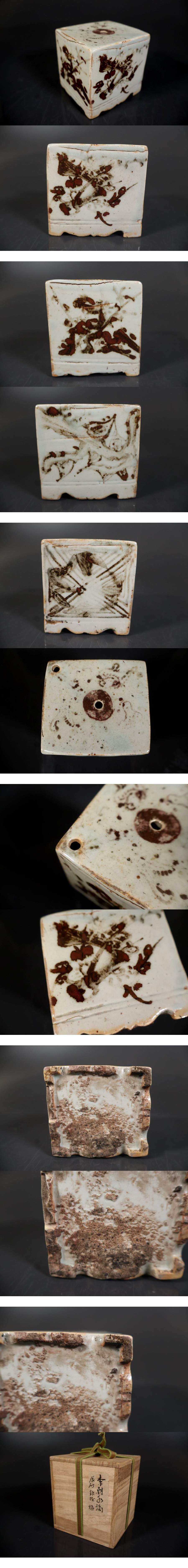 【小】5384 コレクター放出買出品 李朝 珍品 李朝中期 辰砂鉄絵四方水滴 李朝水滴 保管箱有 文房四方 收藏