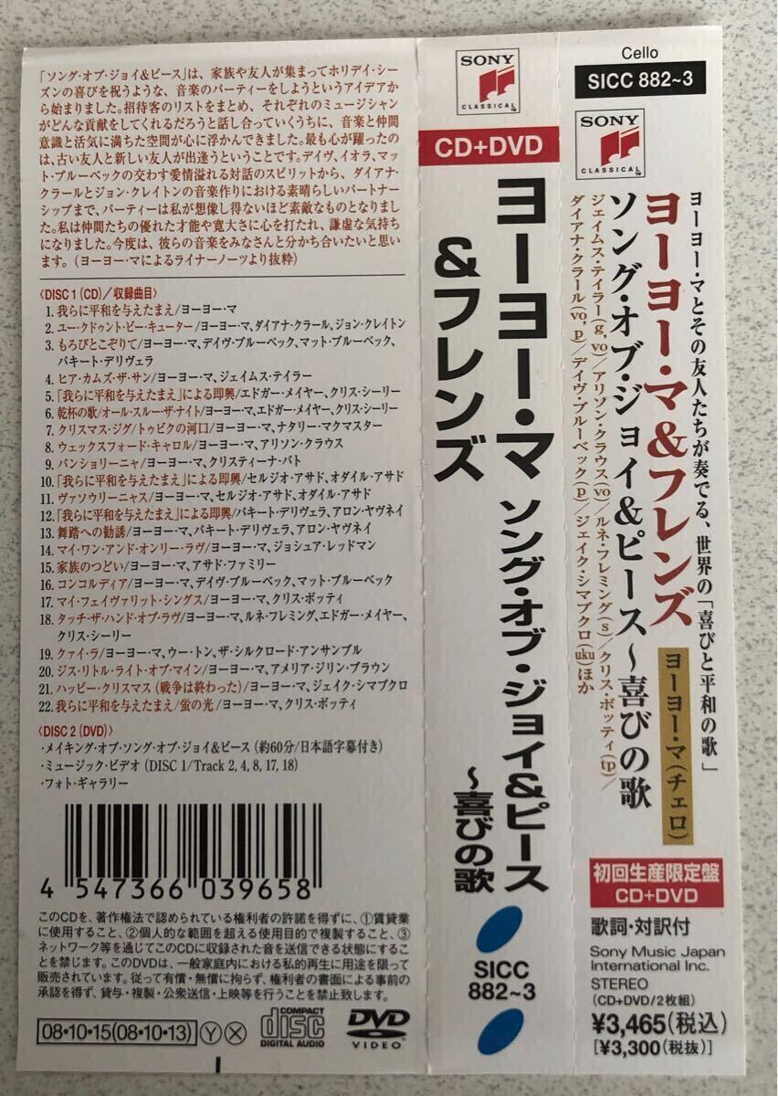 CD+DVD ヨーヨー・マ&フレンズ/ソング・オブ・ジョイ&ピース〜喜びの歌(初回生産限定盤) 收藏