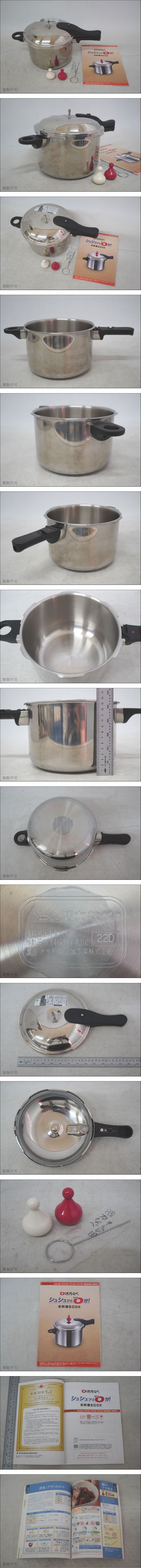 [12-19] アサヒ軽金属工業 ゼロ活力なべ 圧力鍋 Lスリム 4.0L ステンレス 赤白オモリ 掃除棒 お料理BOOK付き 取扱説明書 調理器具 現状品 收藏