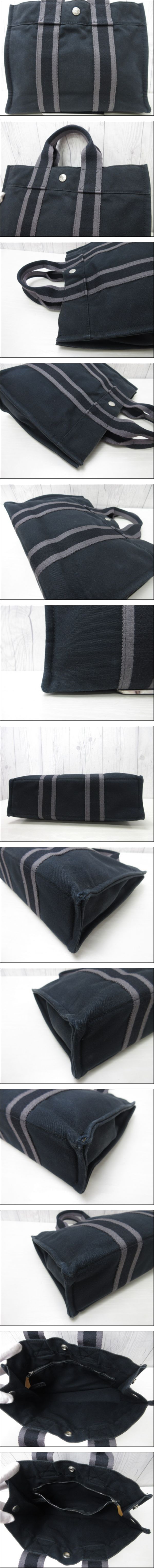 極美品 HERMES エルメス フールトゥPM ハンドバッグ トートバッグ バッグ キャンバス 黒×グレー 92908 收藏