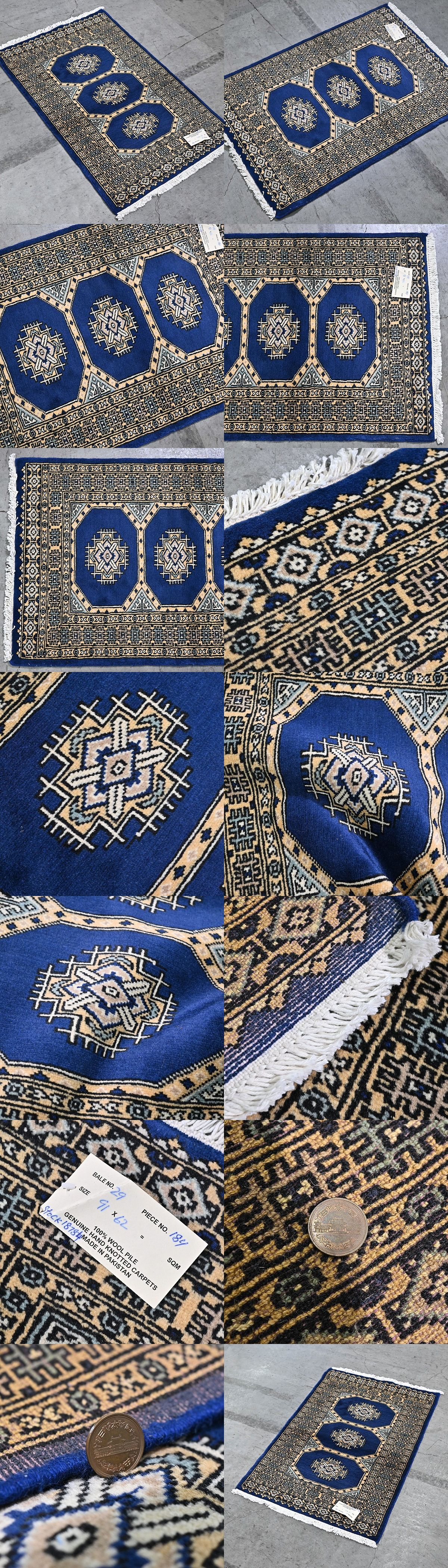 新品 未使用 パキスタン製 手織り ウール絨毯 ラグ ボハラ柄 ギュル文様 ハンドノット 羊毛 カーペット マット ホテル 応接室 P-182 收藏