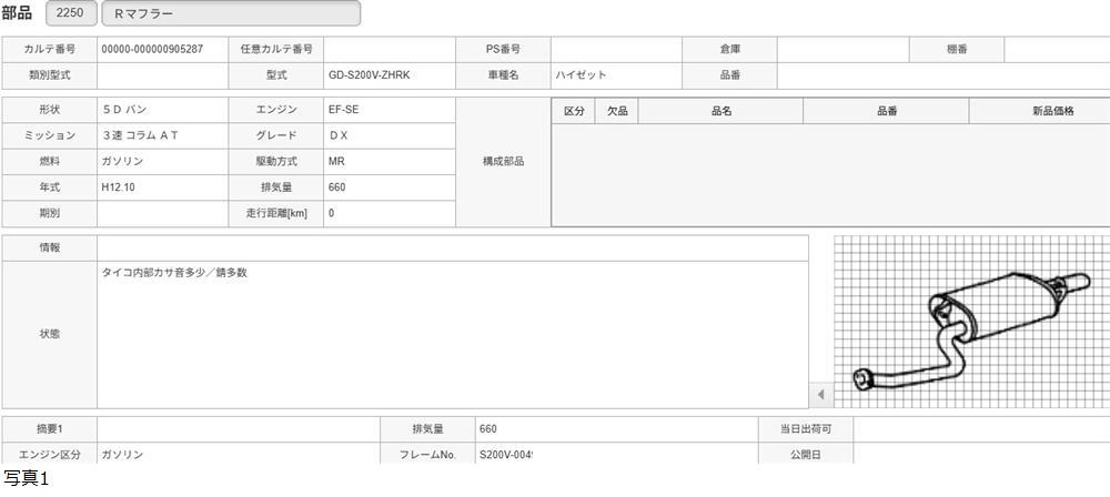 H12年 S200V ハイゼット リアマフラー /送料 M/905287 收藏