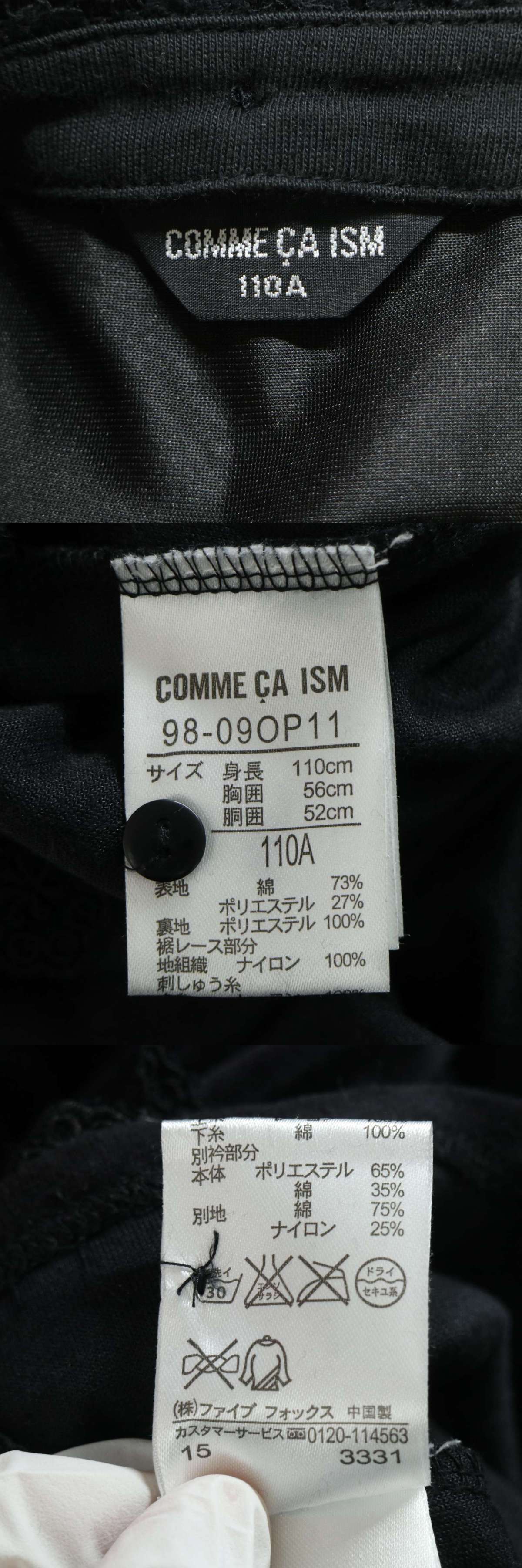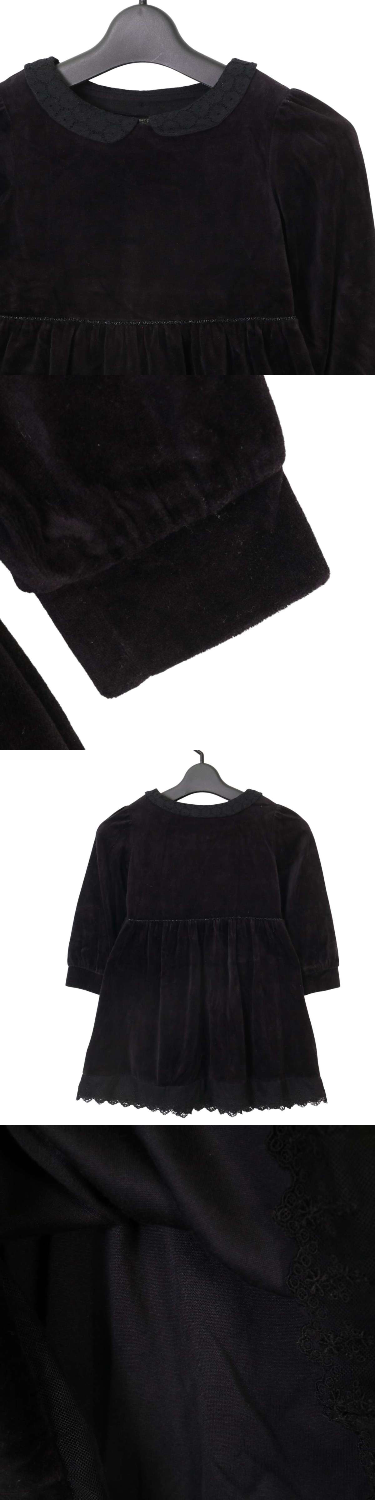 COMME CA ISM コムサイズム 秋冬 ベロア★ レース フレア 長袖 ワンピース Sz.110 キッズ 黒 收藏