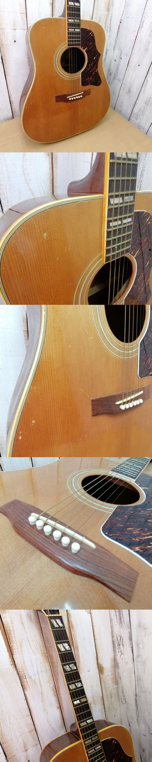 ブランド名: Chaki(チャキ)、茶木弦楽器製作所 モデル名: W-50 製造年代: 主に1970年代に製造 ジャパンヴィンテージと呼ばれる希少なギターです。 特徴: Gibson(ギブソン)社のサザンジャンボというモデルからインスピレーション 当時としては高級な仕様で、しっかり「枯れた」響きが特徴とされています。 全体的にスレやキズ等使用感のみられる商品です。 大きなダメージは無いようですが、ご理解の上ご検討をお願いします。 詳しくは画像をご覧ください。 『YAMAHA』のハードケースに入っています。 ケースはスレやキズ・サビ等ダメージがみられます。 梱包用程度にお考え下さい。 ※発送は、ハードケースをプチプチで包むのみの簡易梱包となります。 画像にあるものが全てになります。 現状のままでお届けしますことをご了解ください。 ご質問がある場合は、お気軽にお問い合わせください。 あくまでも中古・保管品です、画像をごらんの上ご判断をお願いします。 撮影時の光加減等やPC・モニタにより色具合が違って見えることもあります。 きれいなもの・完璧なものをお求めになりたい方はご遠慮ください。 保管品であることをご理解いただける方のみご検討ください。 |