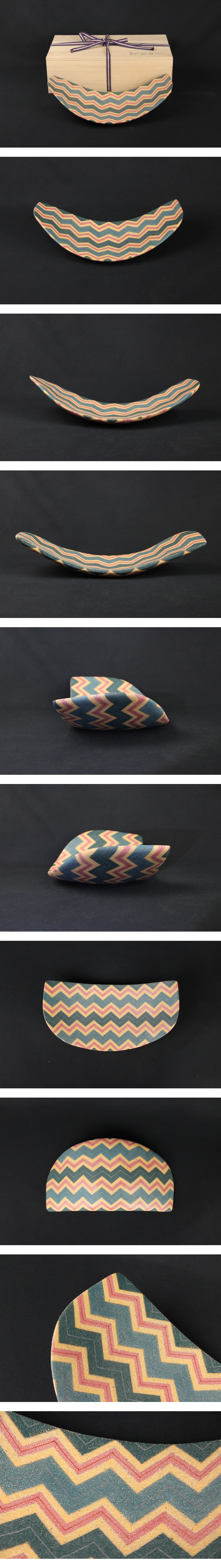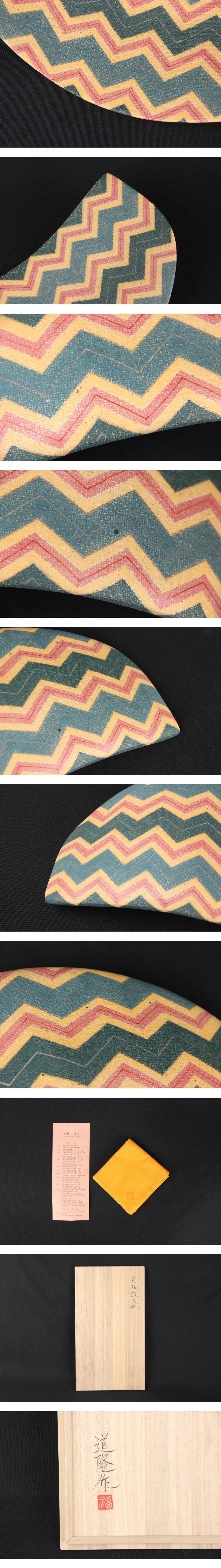 福野道隆 (造) 赤絵絣文 皿色絵波文皿 共箱 共布 しおり 茶道具 陶磁器 師: 伊藤東彦 FJ21-3 收藏