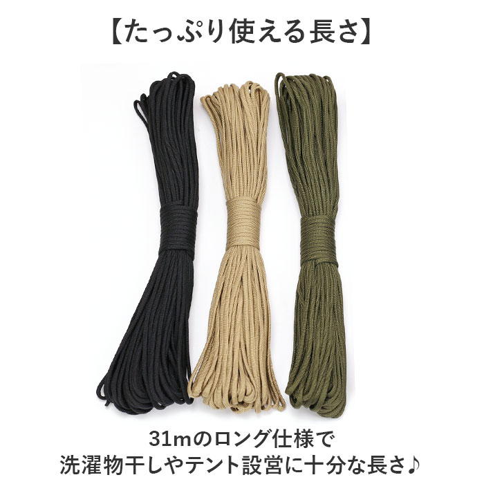 ☆ ブラック ☆ パラコード 31m 9芯 4mm パラコード 4mm 31m 9芯 パラシュートコード 洗濯紐 洗濯ひも ガイロープ ガイドロープ 紐 ひも 收藏