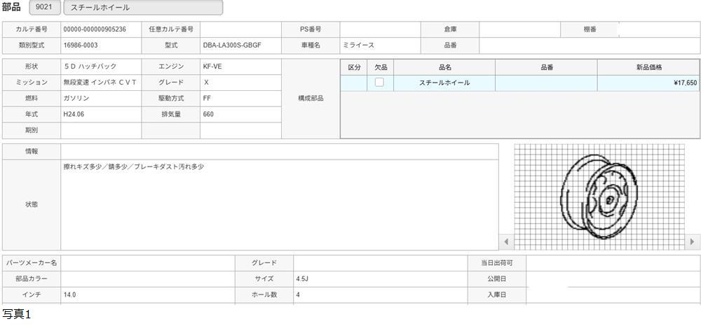 H24年 LA300S ミライース スチールホイール 4本 14×4.5J /送料 S/905236 收藏