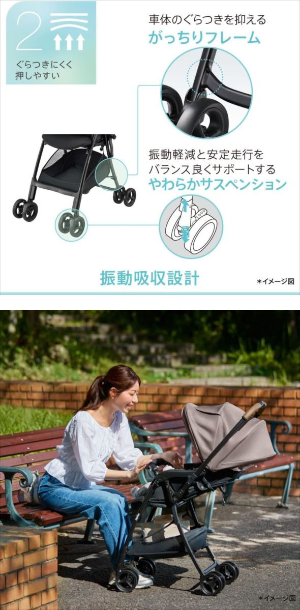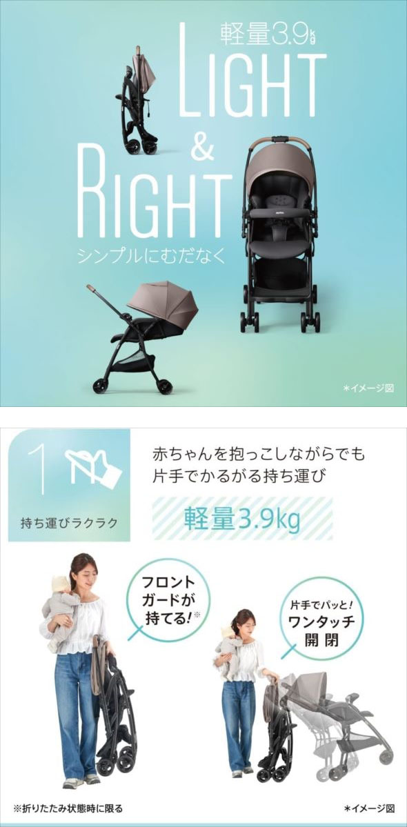 【商品特長】 ●アップリカの「カルーンエアー メッシュ AC」は、生後1か月から使える両対面A形ベビーカー。 ●軽量3.9kgで持ち運びラクラク。片手でパッとワンタッチ開閉。折りたたんだ時にフロントガードが持てる。 ●がっちりフレームとやわらかサスペンションからなる振動吸収設計で、ぐらつきにくく押しやすい。 ●クッションをベースシート頭部に搭載。洗えるメッシュシート(※)、 座席の温度上昇を防ぐWサーモメディカルシステムで快適な乗り心地。 ●前からも出し入れできるフロントイン・ビッグバスケットで収納ラクラク。 ●日差し・紫外線などから守るカプセルマルチフード。 ●熱・ホコリから遠ざけるハイシート51cm、安定走行のダブルタイヤ、やわらかい頭を安定させる頭マモールパッド、 高級感がありお手入れしやすいレザー調ハンドルなど嬉しい機能も充実。 ※ 液温30度を限度とし、洗濯機の弱水流で洗ってください。洗濯ネット使用、ねじり又は絞り禁止。 | |||||||||||||||