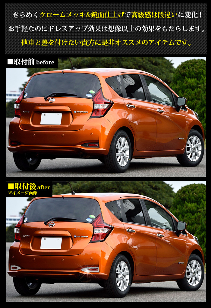 ノート E12 後期 リフレクター リフレクター ガーニッシュ リフレクター カバー メッキ パーツ 鏡面 クローム FJ4725 收藏