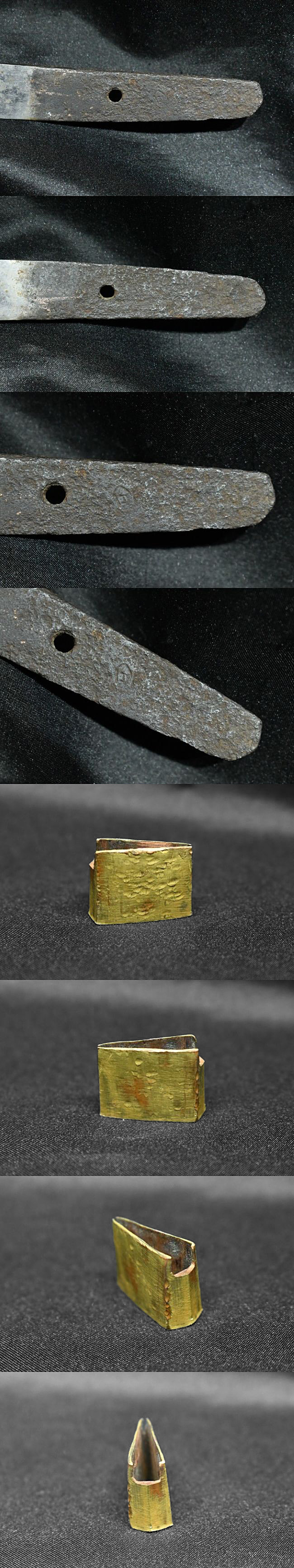 表【兼口】 裏【-】 種別:短刀 サイズ:長さ 25.3cm 反り: cm 目くぎ穴 1個 元幅:約 2.097cm 元重:約 0.508cm 先幅:約 1.567cm 先重:約 0.375cm 刀身重量:約 125.9g(ハバキ・柄をとった状態) ハバキ重量:約 8.6g 鞘全長:約 39.8cm |