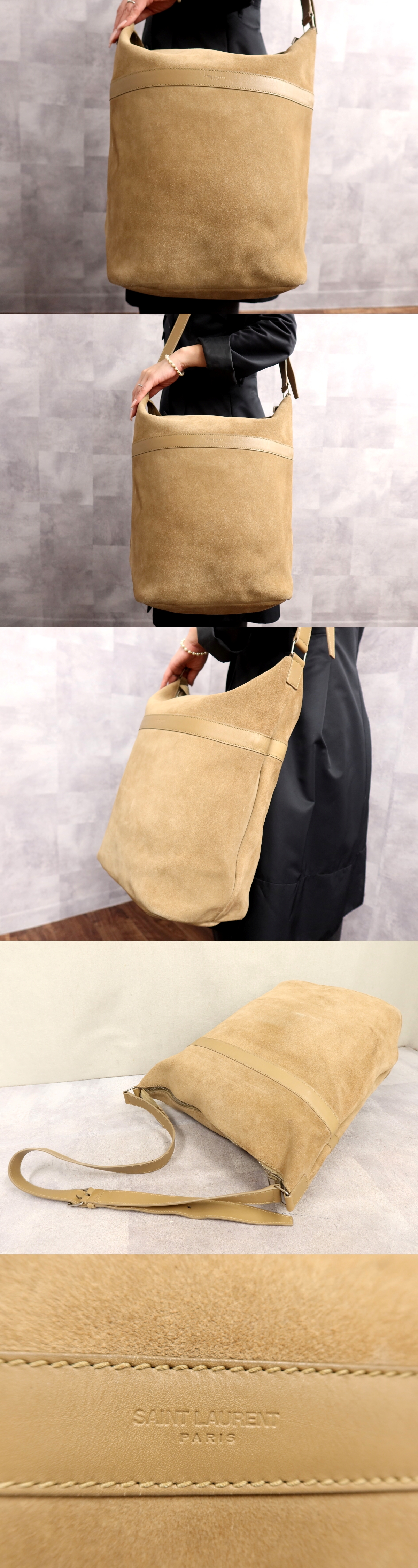 ●超美品●SAINT LAURENT サンローラン●スエード カーフ レザー 本革●ショルダー バッグ●ベージュ●シルバー金具●肩掛け●A4●Js65145 收藏