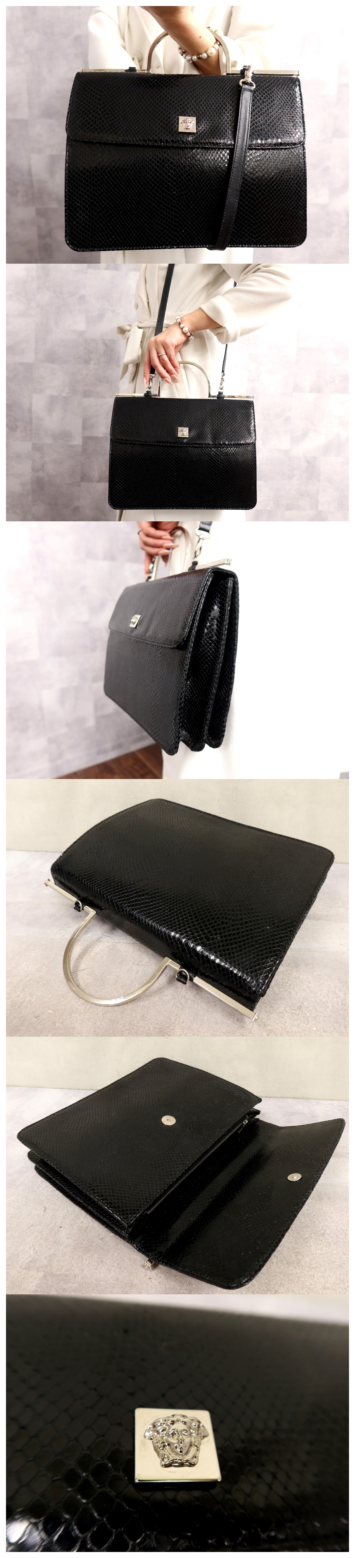 ●超美品●GIANNI VERSACE ジャンニ・ヴェルサーチ●メデューサ●パイソン 型押し レザー 本革●2way ハンド バッグ●黒●B5 収納●Js65097 收藏