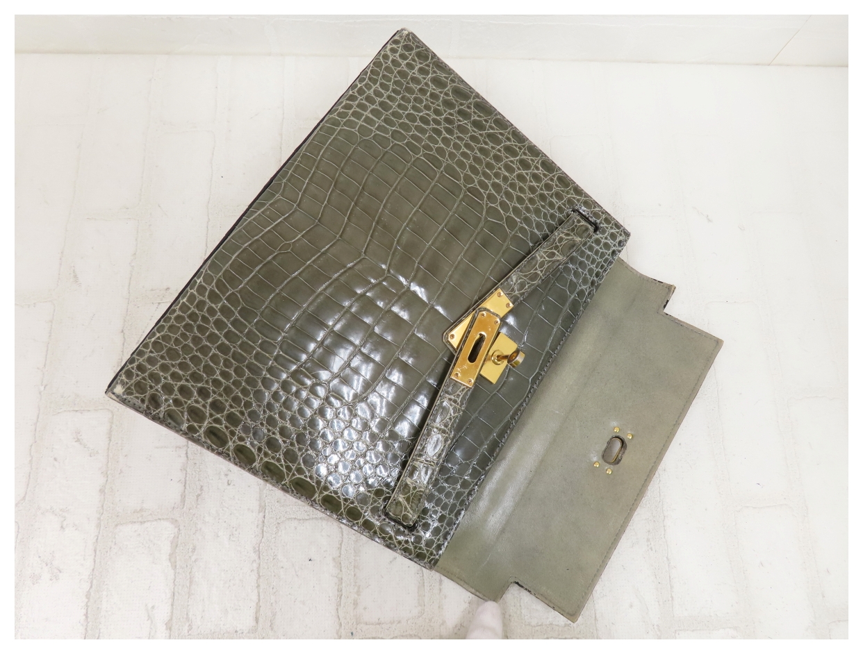 ◆超美品◆GENUINE◆シャイニング クロコダイル 本 ワニ 革◆ハンド バッグ◆グリーン系 G金具◆ヴィンテージ◆トップハンドル◆A15657 收藏