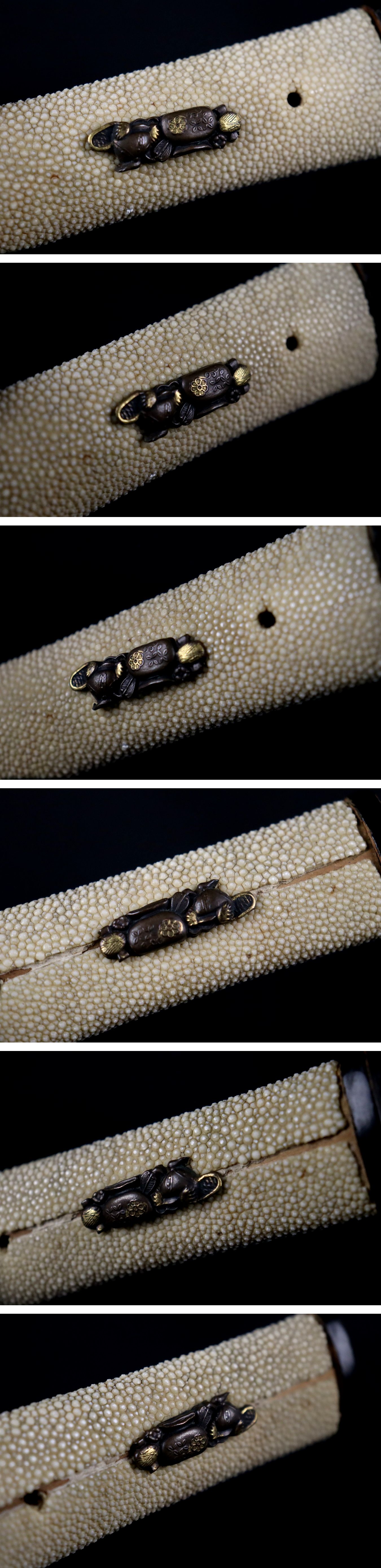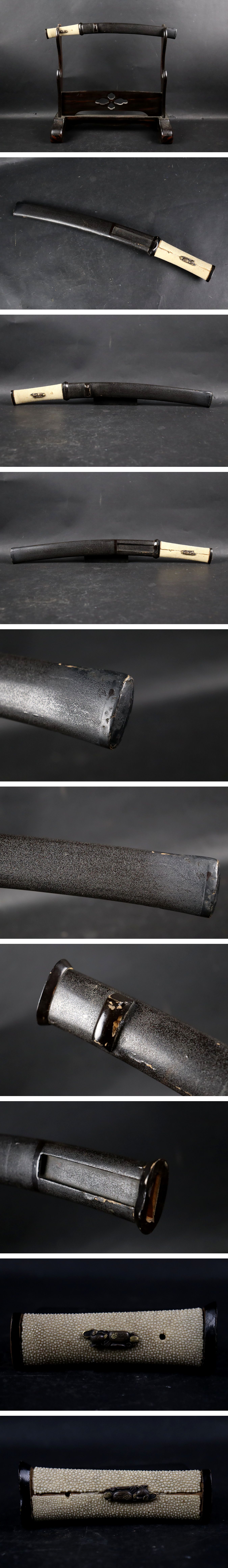 刀剣美術 黒漆塗鞘研出鮫皮巻柄外装拵 44cm 時代武具 刀装具 收藏