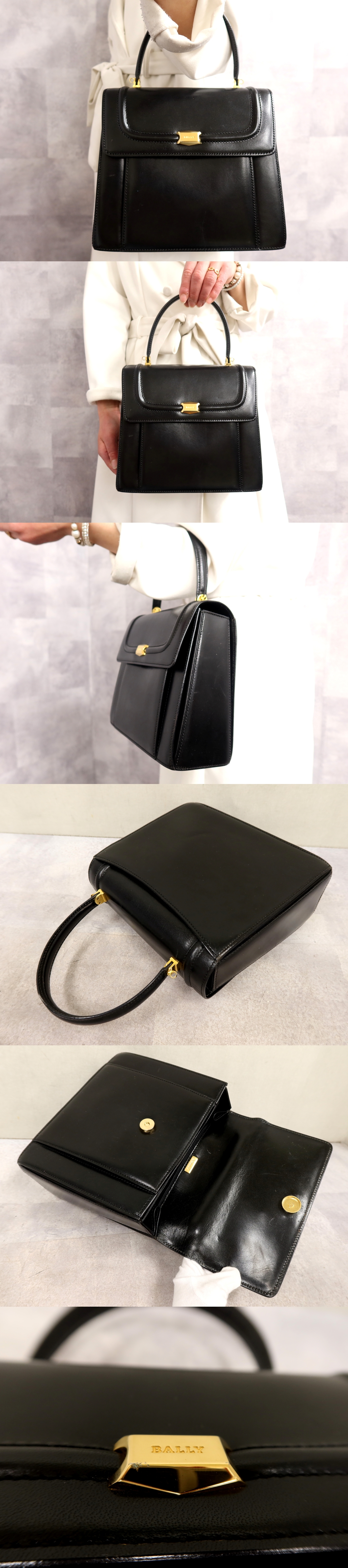 ●超美品●BALLY バリー●トップハンドル●フラップ●カーフ レザー 本革●ハンド バッグ●黒●ゴールド金具●腕掛け●かばん●Js65554 收藏