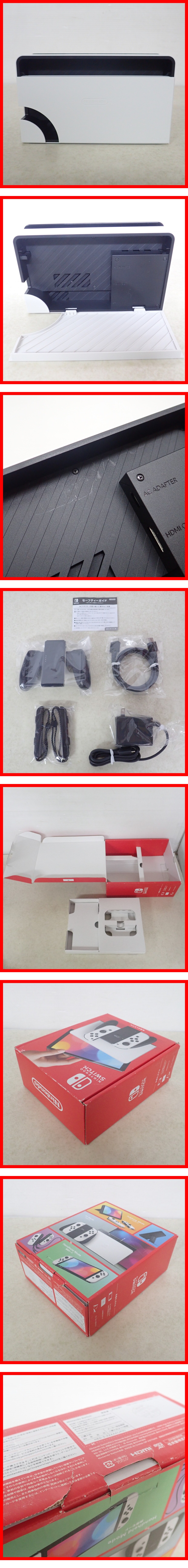 | 動作品 NSW ニンテンドーSwitch 有機ELモデル 本体 ホワイト HEG-001 任天堂 Nintendo スイッチ 箱付 ■箱にスレ、角スレ、汚れ、キズ、破れ、へこみがあります。 ■箱と本体のシリアルは一致しています。 ■本体にスレ、キズがあります。 ■本体の液晶にヤケがあります。 ■本体は2023年製です。 ■ドックにスレ、汚れがあります。 ■Joy-Conにスレ、キズ、汚れ、ゴムの破損があります。 ■Joy-Conグリップにスレ、キズがあります。 ■ケーブル類にキズ、汚れがあります。 ■NSWソフト【 スプラトゥーン2 】にて動作確認を行いました。 ■本体は動作チェック後に初期化済です。 ■インターネットへの接続は未チェックです。 ■商品の状態・セット内容につきましては写真をご確認ください。 ■一部を除いての発送は行っておりません。 ■動作チェック・撮影に使用した以下のものは付属しません。 ・モニター ・ゲームソフト ■写真のものが全てです。付属物の有無や状態については写真からご判断ください。 ■付属物については細かいチェックはしておりません。万が一、欠品があったり余計な物が入っていたとしてもご了承ください。 ■商品によりますが、発売されてから10年以上経過している中古品であることをご理解いただいた上でご入札をお願いいたします。なお、新品や美品、そのほか特記事項がある場合は別途明記します。 ■ご落札いただいた本体及び箱や取説、付属品、梱包材などは1つでも廃棄や破損をしないようにお願いいたします。 ■商品のご落札後、廃棄や破損をした場合、あるいは【修理や整備、カスタム、付属物の抜き取りやページの抜き取り/書込み等、ご落札者様の目的に応じて何らかの手が加えられた商品】に関しましては、問題があった場合でも対応や返金などの対処ができませんのでご注意ください。 |