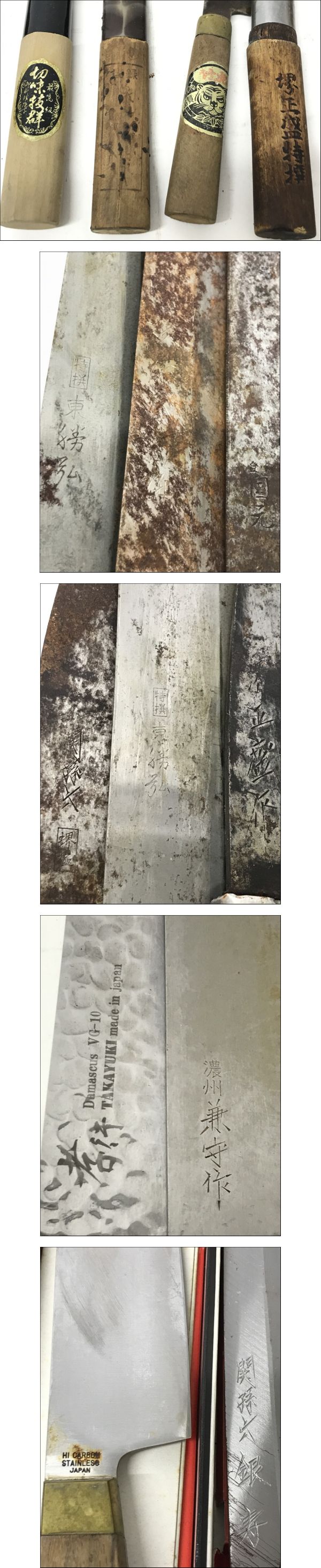 | 4.10 ▲ 和包丁まとめ 柳刃包丁 出刃包丁 菜切り包丁 など 堺 濃州兼守作 銘あり | ||