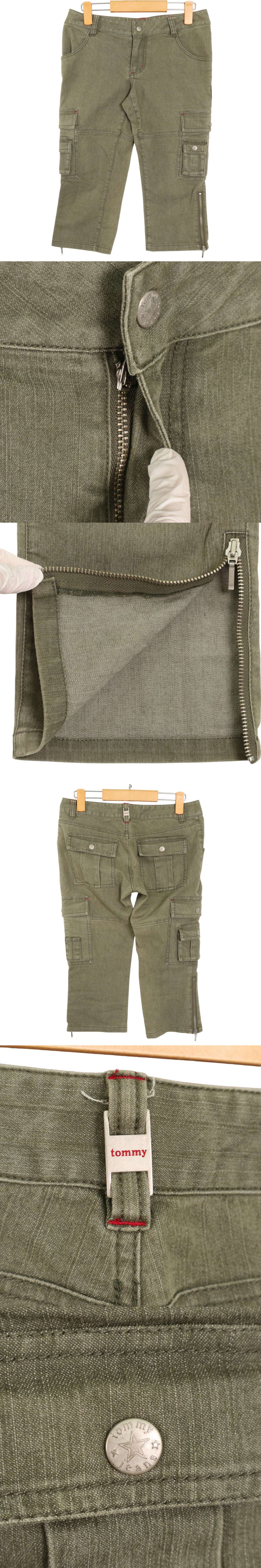 TOMMY JEANS トミーヒルフィガー 加工★ ストレッチ クロップド ワーク カーゴ ミリタリー パンツ Sz.S レディース 收藏