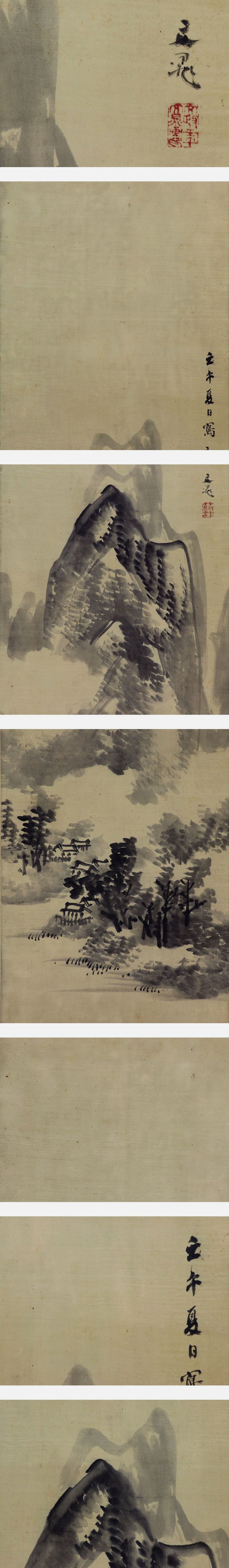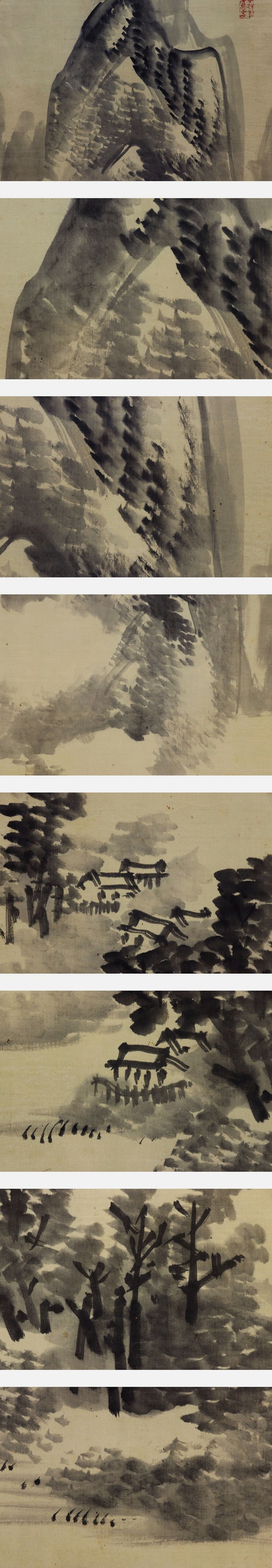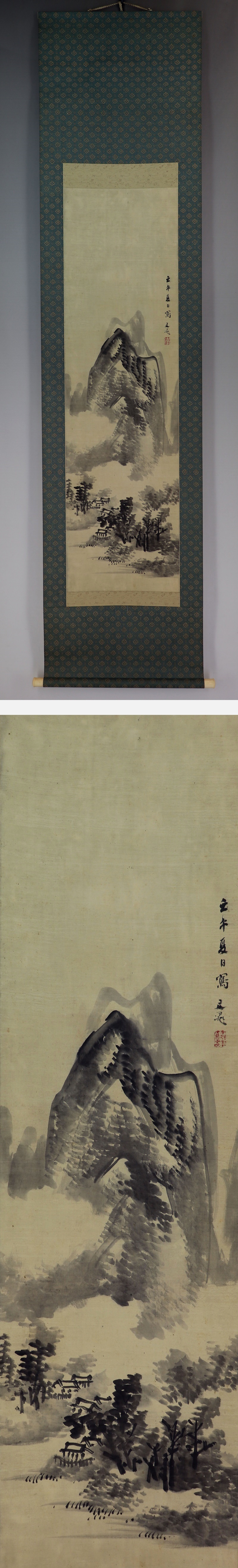 | №2106210【真作】谷文晁【米法山水】◆絹本◆合箱◆掛軸 | |