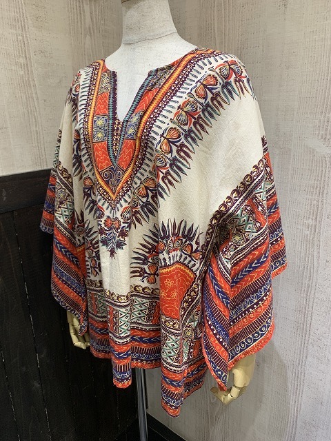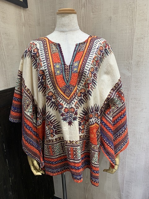 | こちらは、70年代頃のビンテージ パキスタン綿 バティック柄 チュニック ブラウスになります。 白ベースのバティック柄が引き立ちます。また、特徴のあるウイングド (エンジェル) スリーブが女性らしく、チュニック丈は着回しが効き便利です。この辺りのアイテムも、年々高騰しているアイテムです。お探しの方は是非、ご検討下さい。サイズ的にも男女共にお勧めです。 コンディションは多少の使用感があり、縫製の雑な部分等がございますが、ビンテージに慣れている方なら気にならない程度かと思います。 素材 コットン サイズ フリーサイズ(着用感M-L) 身幅59cm 袖丈46cm(襟元から袖口まで) 着丈約69cm 撮影用トルソーサイズ 肩幅36cm バスト80cm ウエスト62cm ヒップ84cm 素人採寸の為、多少の誤差はご了承ください。 | |||