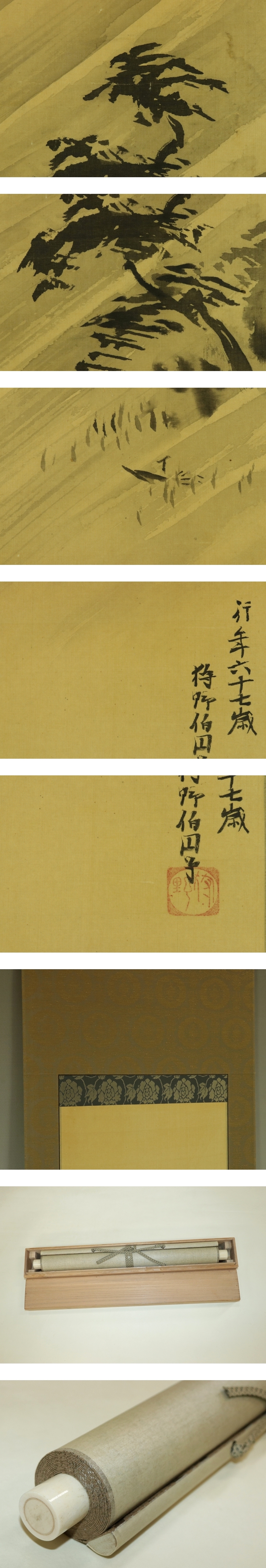 №2112107b【真作】狩野伯円【水墨山水】◆絹本◆合箱◆改装済掛軸 | |