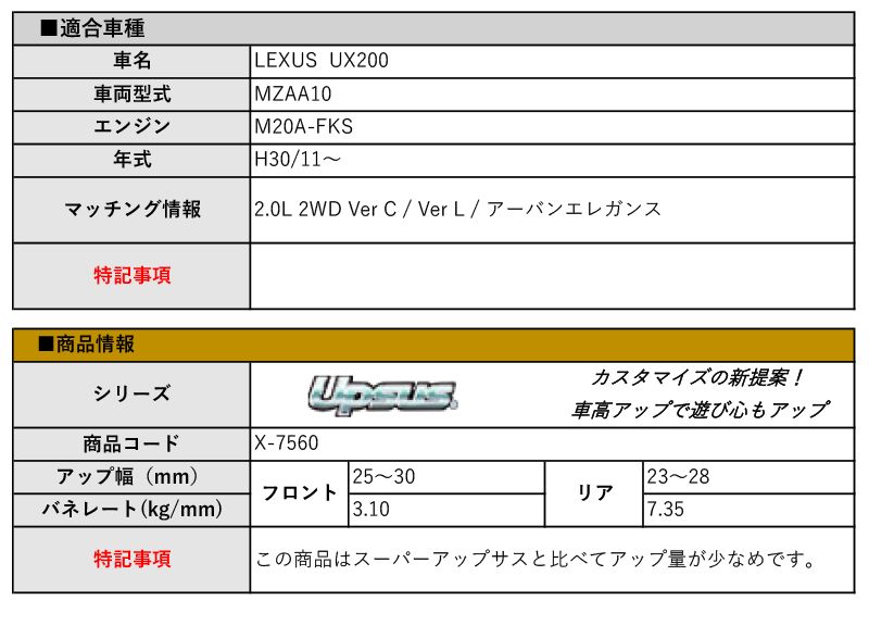 [エスペリア]MZAA10 レクサスUX200_バージョンC / L / アーバンエレガンス(H30/11~)用アップサス 收藏