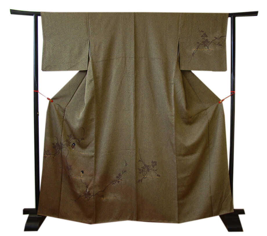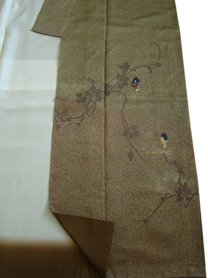 | 商品説明 | こちらのお品は「袷」でございますので、10月~5月までお召頂ければと思います。 しなやかでさらりとした柔らかな手触り良い重めの極上ちりめん地の生地、 渋い生壁色地に裾にかけて赤茶色ぼかし染に媚茶色のたたき染に、 花木柄の染柄に金彩加工に童子柄の刺繍入り、 八掛は枯茶色(正絹)、幅広い年代の方にお召頂けます。 |