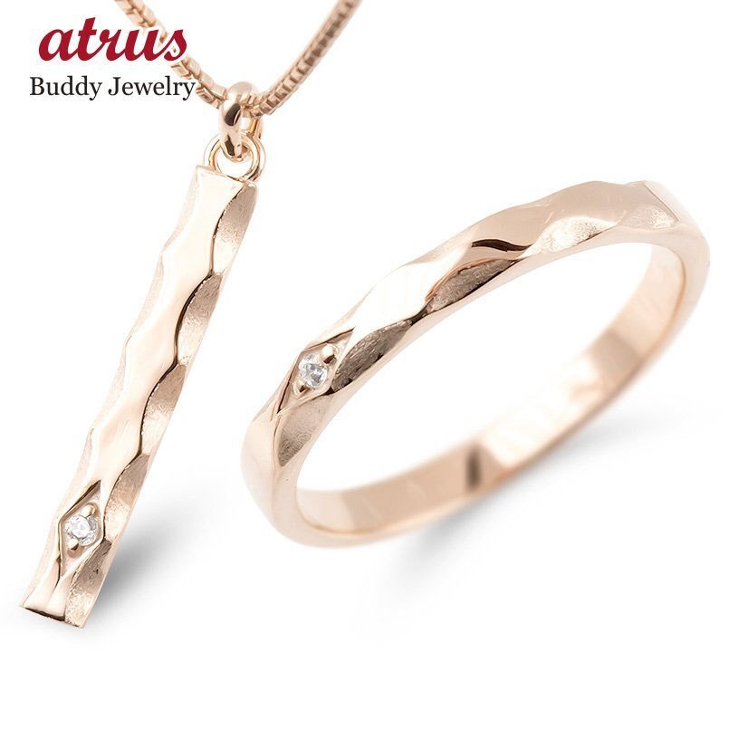 ゴールド リング ネックレス ダイヤモンド メンズ ペア リンクコーデ セット ピンクゴールドk10 バーネックレス トップ 指輪 收藏