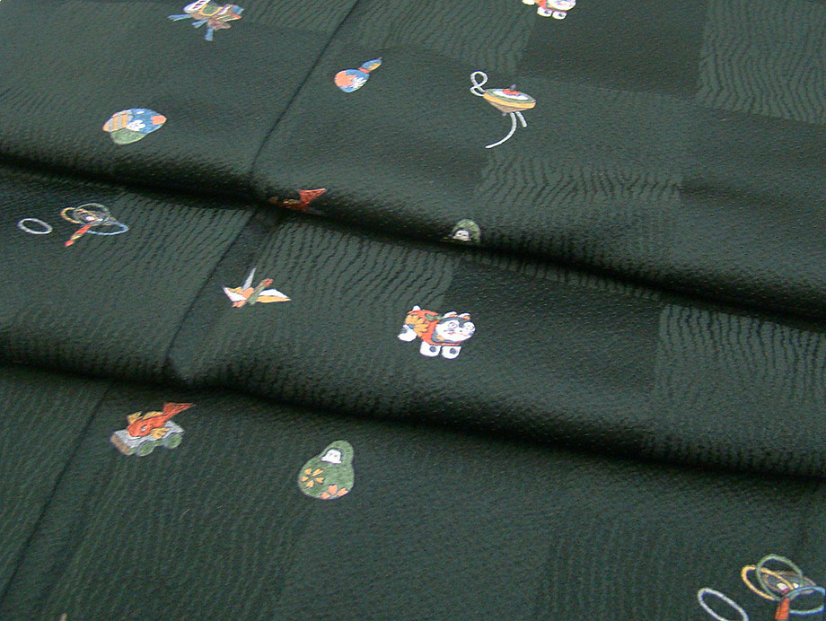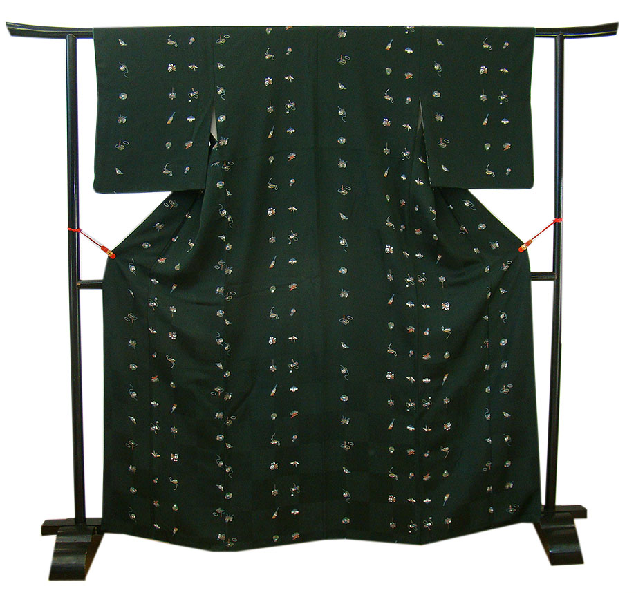 時代屋 裄65.2cm お茶事 縮緬地 黒地 小紋 正絹 仕立上り 袷 152cm~158cm KK824 收藏