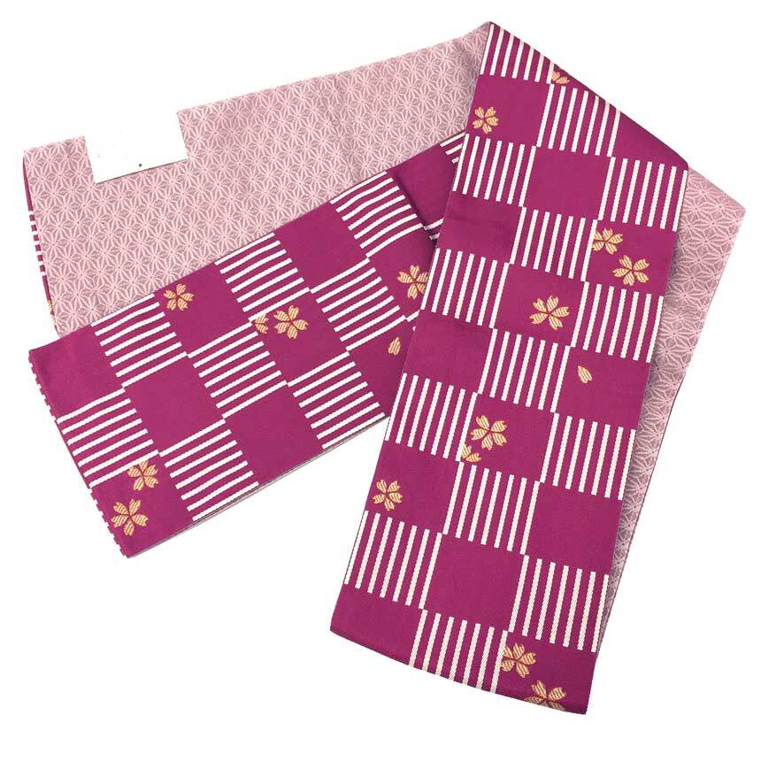 京やK370 全国送料無料 洗える半幅帯 リバーシブル 小袋帯 半巾帯 両面使い 2WAY 市松文様 格子柄文様 桜 麻の葉文様 未使用 春夏秋冬可 收藏