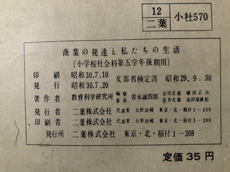 z□□ 昭和教科書 商業の発達と私たちの生活 社会科 五年下 昭和30年発行 教育科学研究所 二葉株式会社 昭和レトロ / Q23 收藏