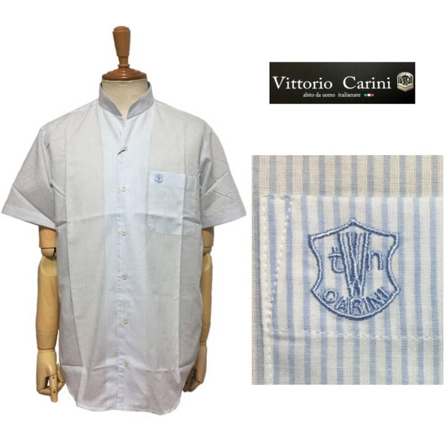 Vittorio Carini ビットリオ カリーニ 半袖スタンドカラーシャツ ストライプ柄 ブルー系 size46 M 收藏