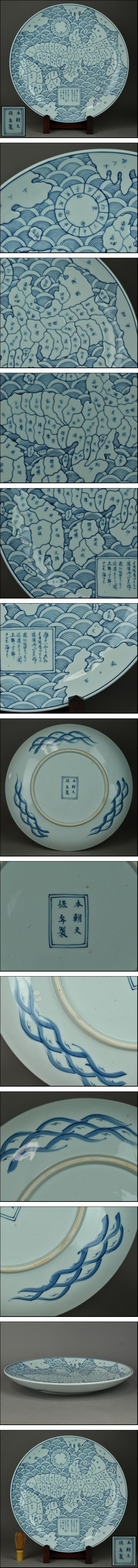 【ACT】古伊万里 時代物【本朝天保年製】染付 地図皿 大皿 飾皿 飾鉢 床置 古美術品 高さ45.9cm A7-717Y 收藏