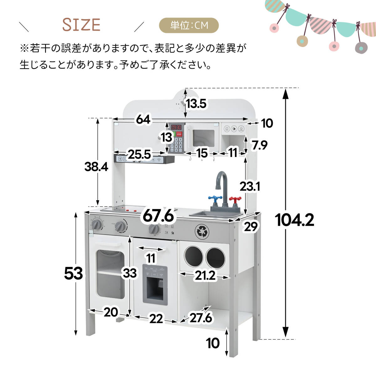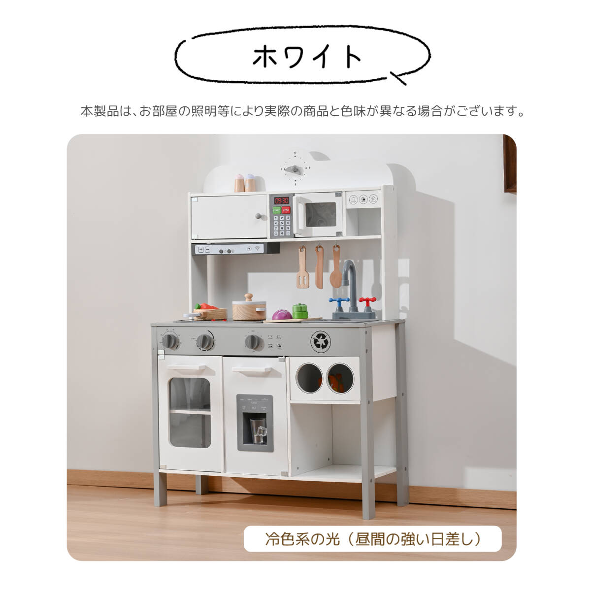 おままごと キッチン 木製 台所 ライト付き 音が鳴る 製氷機調理器具付き 調味料 食材 野菜 知育玩具 コンロ 電子レンジ 家事【ホワイト】 收藏
