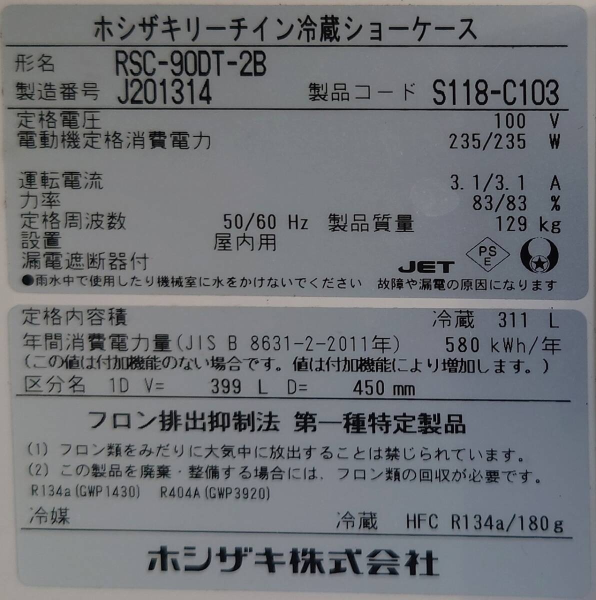 | リーチイン冷蔵ショーケース 100v 311L ホシザキ RSC-90DT-2B | |