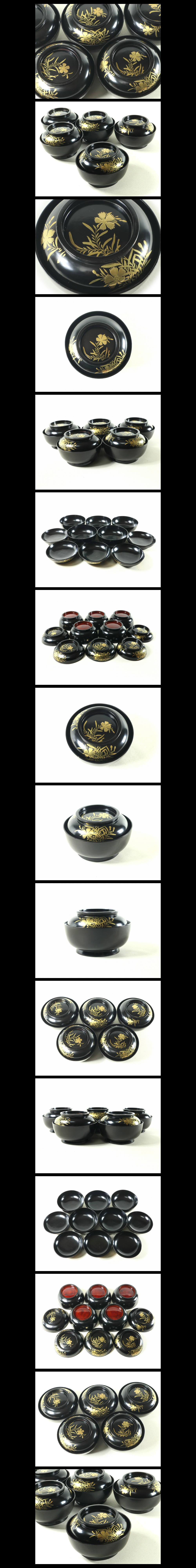 ●c3060●美 時代【輪島塗蒔絵菓子椀5客 草花図 黒真塗大正期/吸物椀煮物椀】検お茶会煎茶道具茶懐石●西瓜● 11210