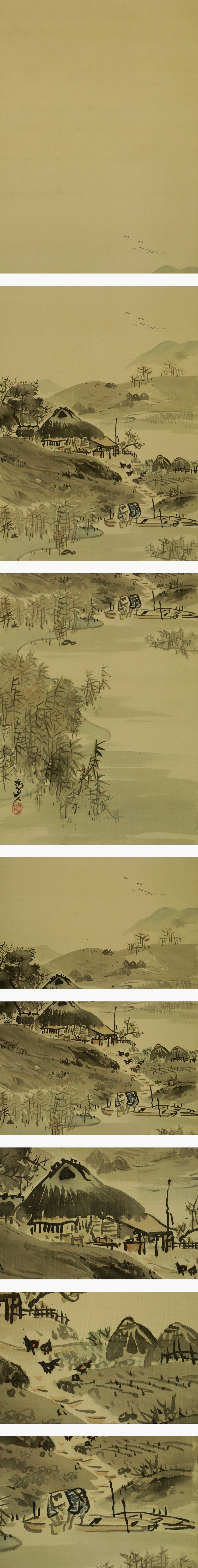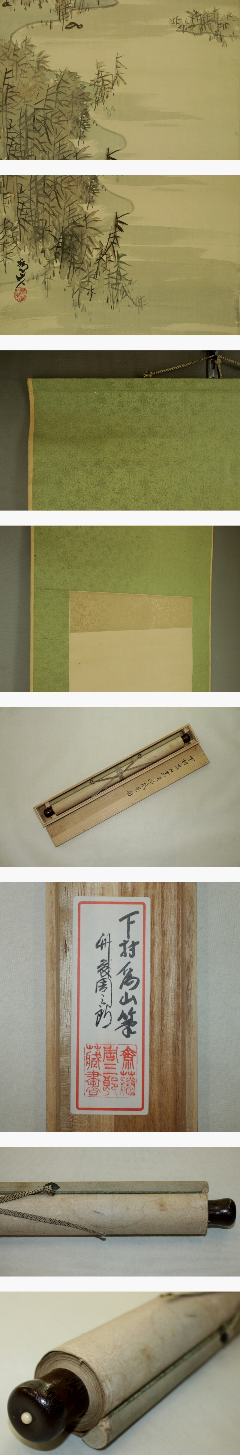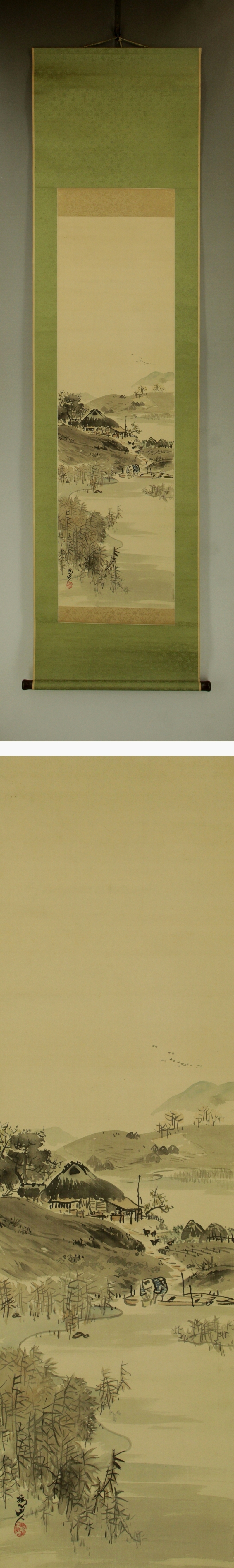 | №2506040【模写】下村為山【漁村風景】◆絹本◆合箱◆掛軸 | |