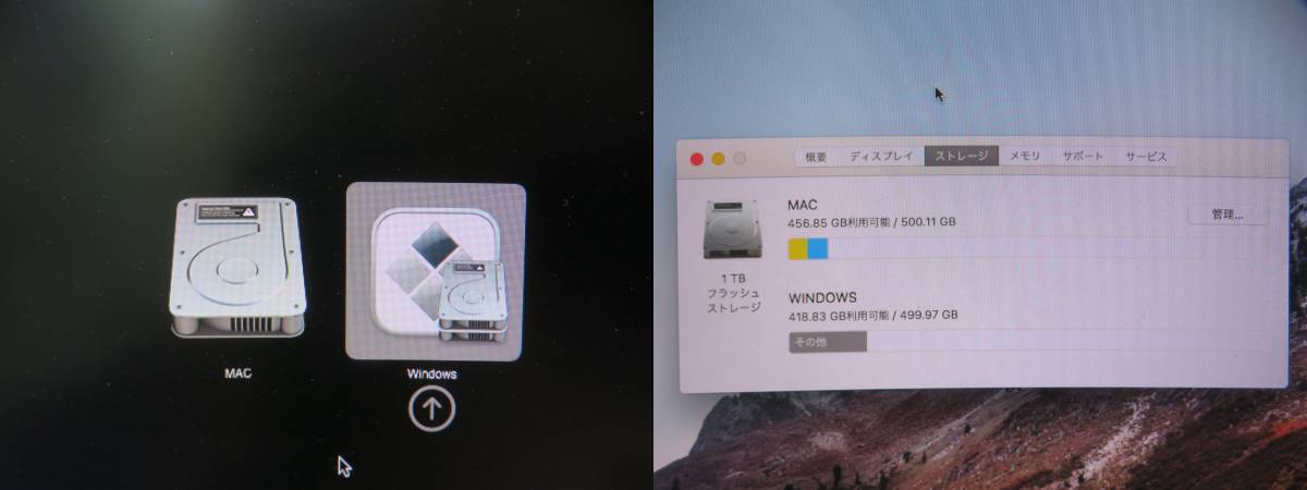 ◆ ストレージ SSD:PCIe 高速起動 1000GB 大容量 ( パーティションはMac,Windowsそれぞれ500GBで分けてありますので、ご利用目的に応じて使い分けできます。)