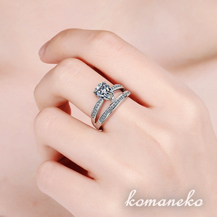 A510 指輪 レディース リング 多重 ジルコニア s925 シルバー フリーサイズ サイズ調節可能 雫型 ティアドロップ 收藏