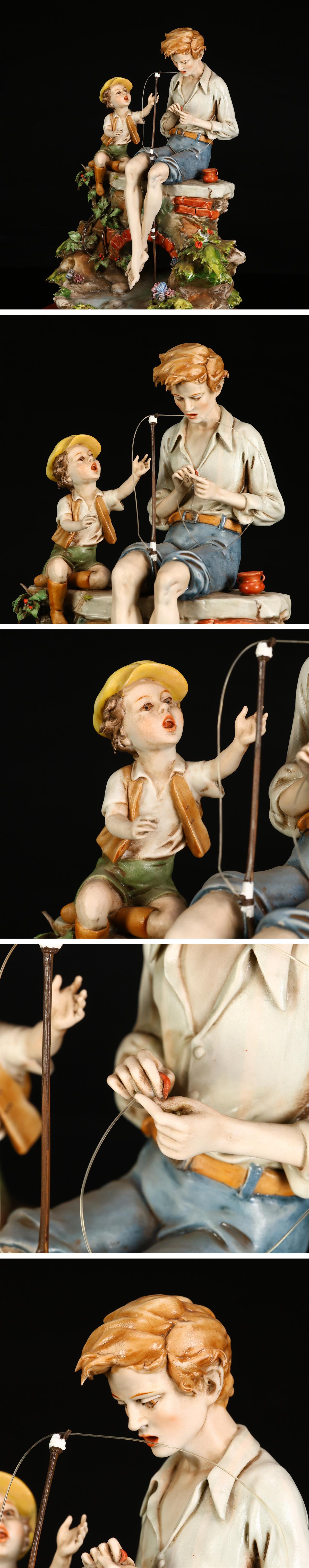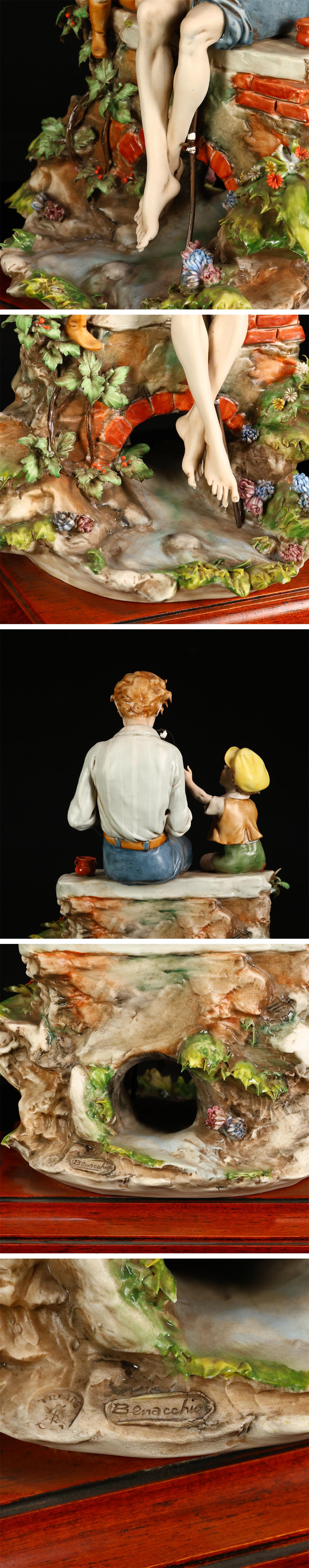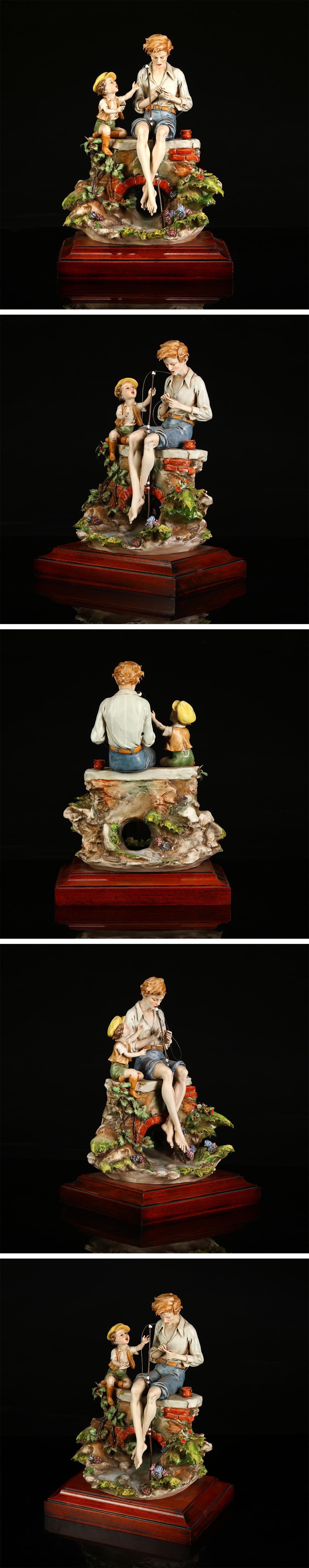 【吉】CN029 洋風インテリア小物 イタリア 【Triade社】 Benacchio作 色絵磁器 親子釣り 置物 高24㎝/美品! 收藏